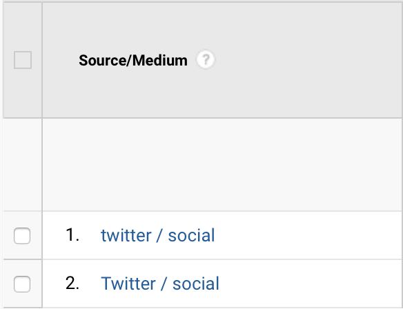 UTM tracking can quickly get complicated, especially when you work in a bigger team or organization. It's essential to set the UTM rules for consistent usages of parameters. In the screenshot below, you see an example of inconsistent usage of parameters. Google Analytics is case sensitive. E.g., utm_source=Twitter is different from utm_source=twitter and will be identified as a separate source.