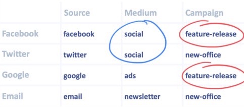 UTM tags provide very valuable insights into your traffic sources. They also allow you to segment cross channels. E.g., When only looking at the medium parameter, you can see what the impact is of 'social.'